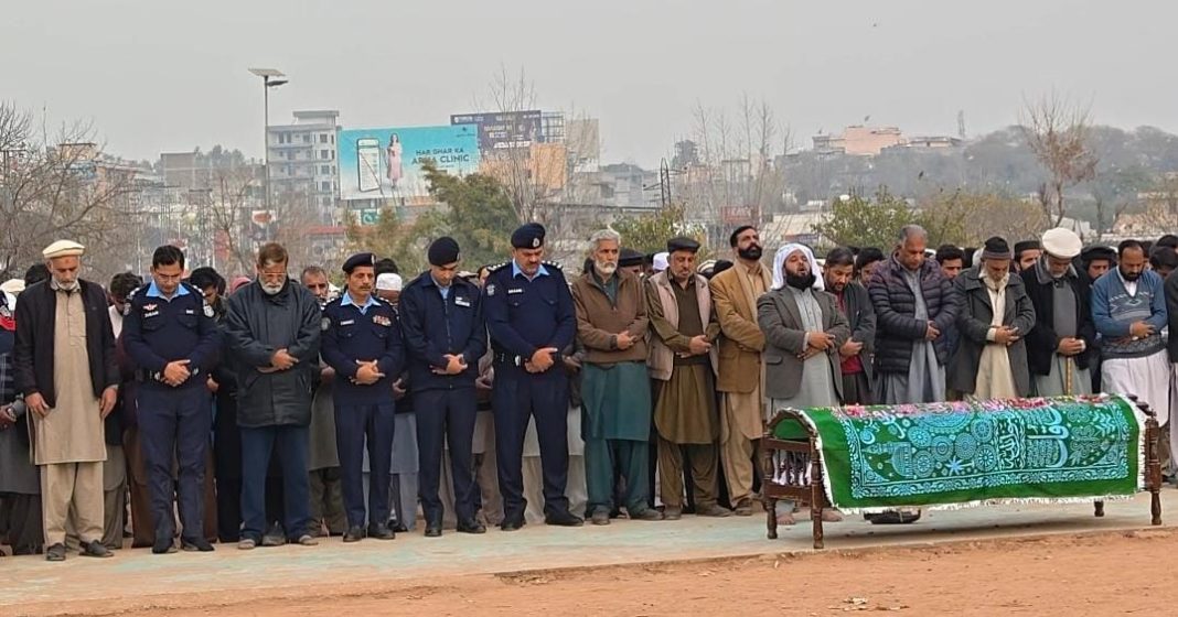 A smart contingent of police personnel presented a guard of honour, while SP Rural and senior officers draped the coffin with flower wreaths and recited Fatiha. The late Constable Yasir Shah was posted in the Operations divisions of Islamabad Police. After the funeral prayers, the body of the deceased was sent to their native areas for burial with full official honors.