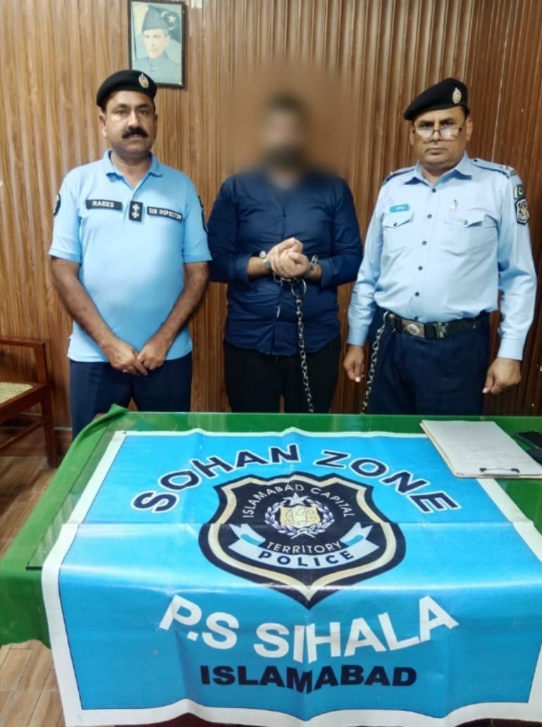 ISLAMABAD: Islamabad Police Sihala police station team with the assistance of Interpol, arrested a fugitive involved in a murder case. The arrested criminal had shot and killed Inspector Raja Zahoor of the Sihala Police College in 2010 using a firearm, and fled abroad after the incident.