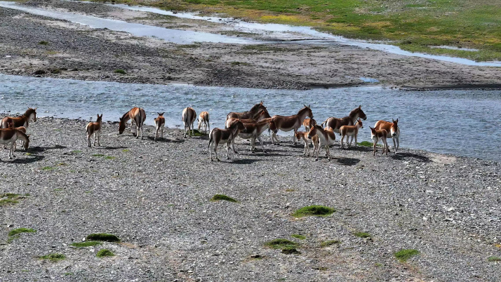 Tibetan wild donkeys in Qumalai County in the source region of the Yangtze River in Sanjiangyuan National Park, Qinghai Province, on September 28, 2024. Biodiversity in the region has been enriched through conservation efforts (XINHUA)