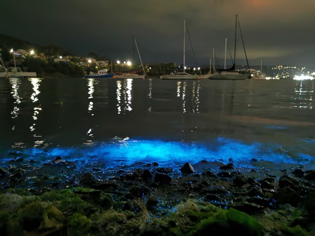 The glow, reappearing almost a year after a similar event, is caused by Noctiluca scintillans, a bioluminescent marine plankton that feeds on microscopic algae and rises to the surface when it dies, creating red slicks that illuminate when disturbed, the Australian Broadcasting Corporation reported Tuesday.