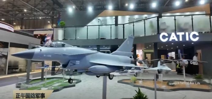According to a report by the military channel of China Central Television (CCTV), a model of a J-10CE fighter jet carrying PL series air-to-air missiles attracted particular attention at the exhibiting booth of China National Aero-Technology Import & Export Corporation (CATIC).