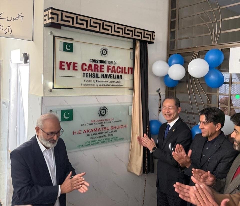 Islamabad: Mr. Akamatsu Shuichi, Ambassador of Japan to Pakistan, on Tuesday, 23rd December 2025, inaugurated a project for the construction of eyecare facility in Tehsil Havelian, District Abbottabad. The project was implemented by Lok Sudhar Association, a non-governmental organization working to improve the essential eyecare services for underserved communities in Havelian.