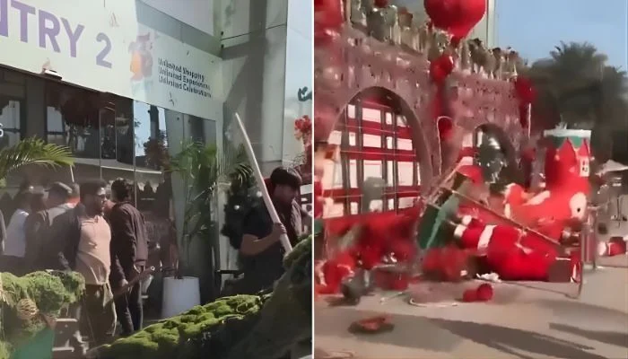A mob armed with wooden sticks vandalised Christmas decorations and installations at a mall ahead of the festival, according to The Indian Express.