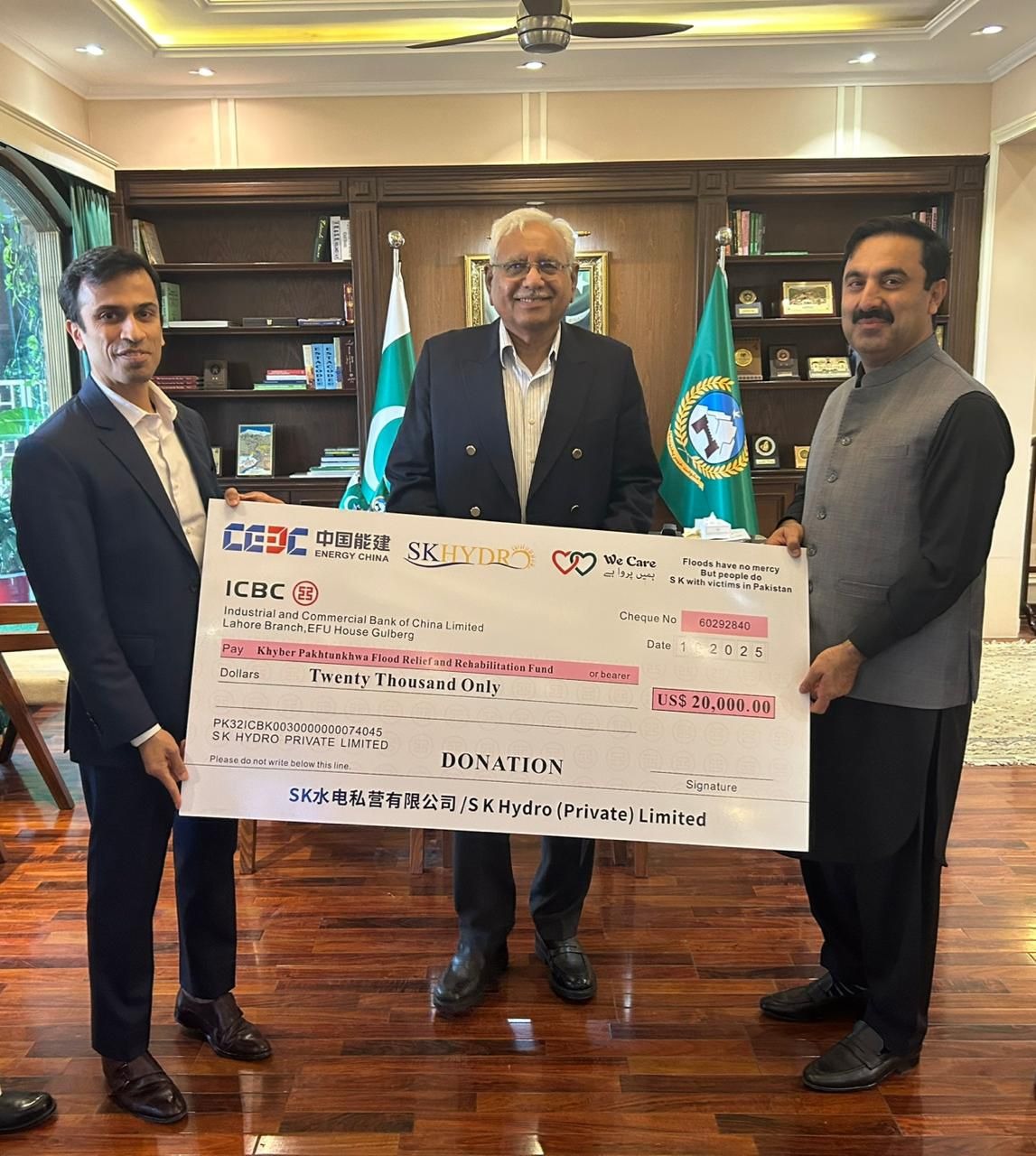 ISLAMABAD: SK Hydro (Private) Limited donated USD 20,000 to the Khyber Pakhtunkhwa Flood Relief and Rehabilitation Fund to aid reconstruction in disaster-affected areas near the Suki Kinari Hydropower Project.