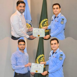 ISLAMABAD: Senior Superintendent of Police (SSP) Safe City Islamabad Dr. Muhammad Iqbal, met with police officers at his office to recognize their outstanding performance and dedication to their assigned responsibilities. He appreciated their excellence in duty and presented them with certificates of commendation.